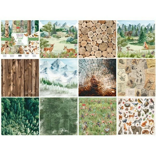 Description de 10 papiers scrapbooking 20 x 20 cm FABRIKA DECORU FOREST LIFE