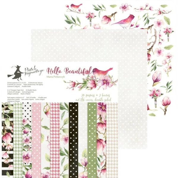 Description de 24 papiers imprimés scrapbooking 15 x 15 cm PIATEK HELLO BEAUTIFUL