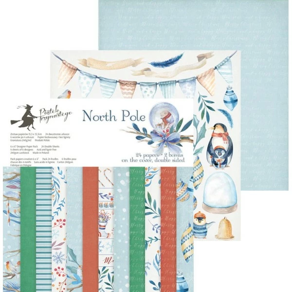 Description de 24 papiers imprimés scrapbooking 15 x 15 cm PIATEK NORTH POLE