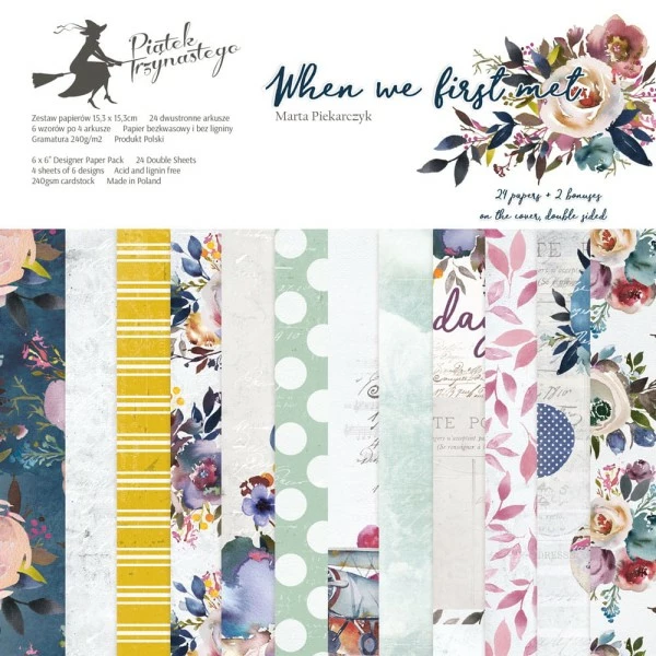 Description de 24 papiers imprimés scrapbooking 15 x 15 cm PIATEK WHEN ME FIRST MET