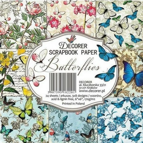 Description de 24 papiers scrapbooking fantaisis 15.2 x 15.2 cm DECORER BUTTERFLIES