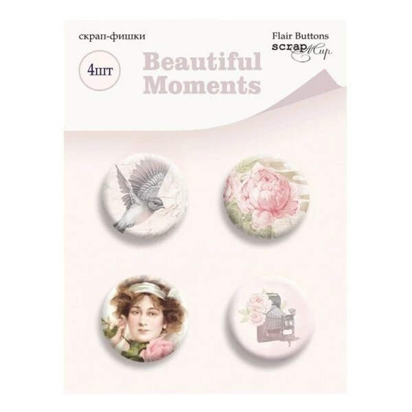 Description de 4 badges métal autocollant décoration scrapbooking SCRAPMIR BEAUTIFUL MOMENTS 44