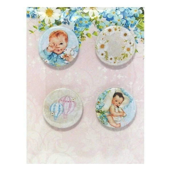 Description de 4 badges métal décoration scrapbooking 2,5 cm LemonCraft LULLABY