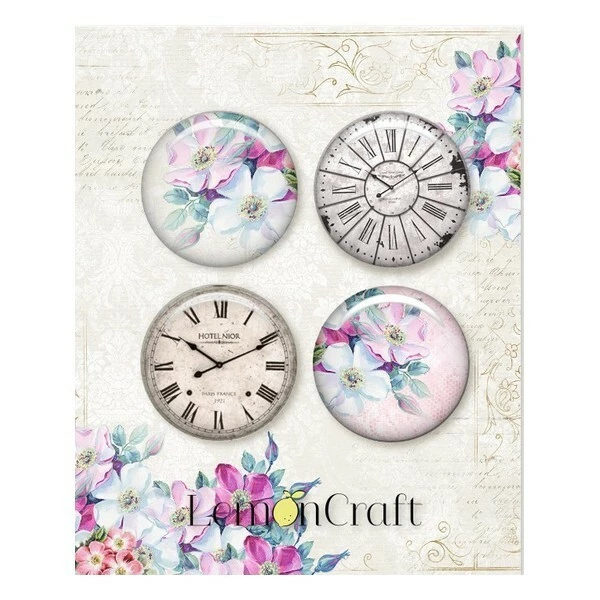 Description de 4 badges métal décoration scrapbooking 2,5 cm LemonCraft NEXT TO ME