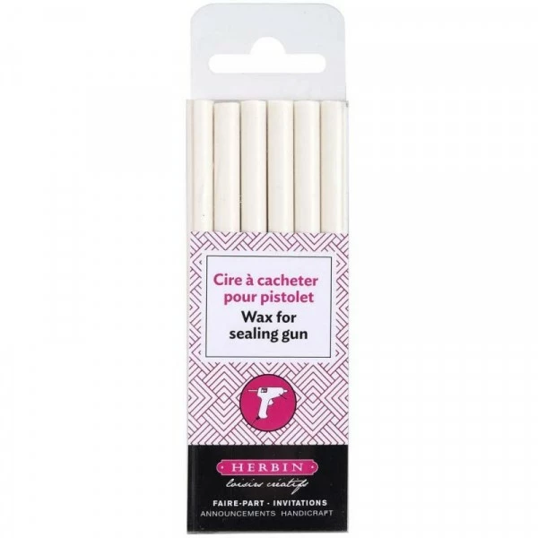 Description de 6 bâtons de cire à cacheter pour pistolet à cire – Blanc – Herbin