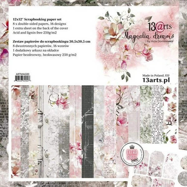 Description de 8 papiers scrapbooking 30 x30 cm 13@rts MAGNOLIA DREAMS