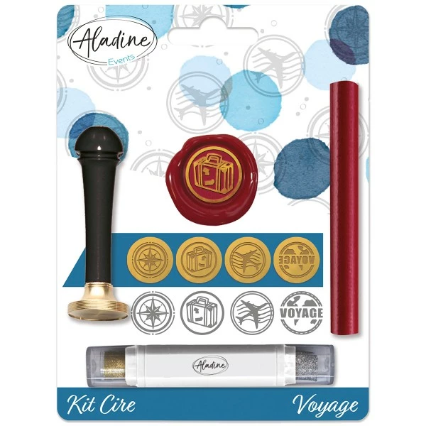 Découvrez ce kit pour cachet de cire «Voyage» pour réaliser vos propres cachets de cire personnalisés et apporteront une touche rétro et d’élégance à vos créations.