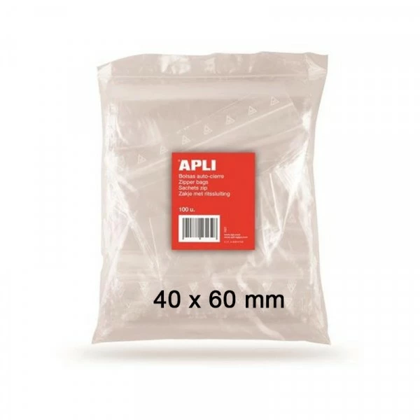 Description de 100 Sachets plastiques 40x60mm fermeture zip Apli