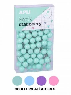 Description de Boîte de 100 punaises rondes couleurs pastel Nordik Apli