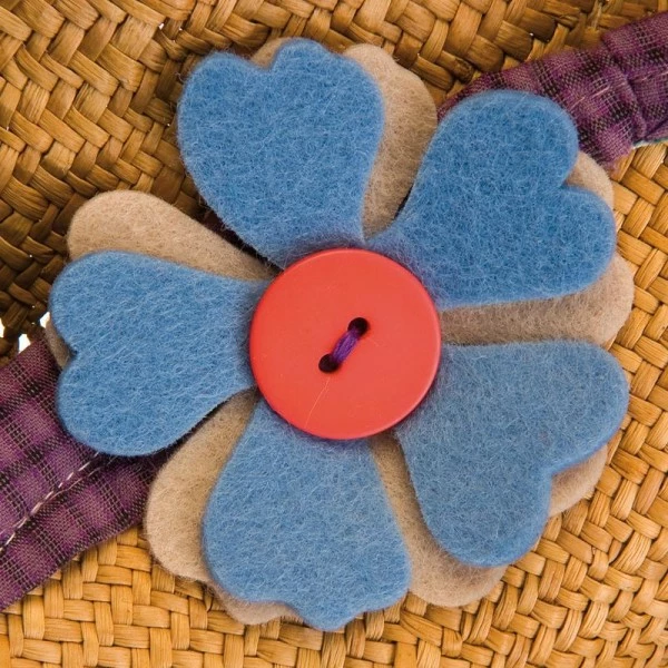 Idée de réalisation avec une fleur en feutrine moyenneguirlande de Noël, déco de sac ou de vêtement, déco de chambre d’enfant, déco de rideau ou d’abat jour …