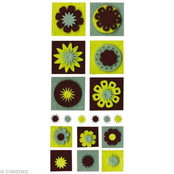 Lot de 18 formes en feutrine décoratives sur le thème Oldies zen d’Artemio. Ces formes en feutrine Oldies zen pourront agrémenter bon nombre de vos créations. Vous pourrez choisir de coller ou coudre vos formes en feutrine sur différents supports, comme par exemple un sac, un cadre photo, une boîte de rangement, un faire part, une page de scrapbooking….etc. Vous apprécierez le volume de ces formes en feutrine Oldies zen. En effet, celles-ci ont été élaborées par superposition de différentes formes en feutrine, ce qui permet d’obtenir un superbe effet de relief.