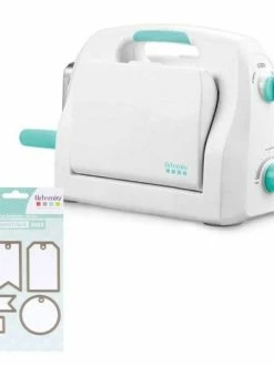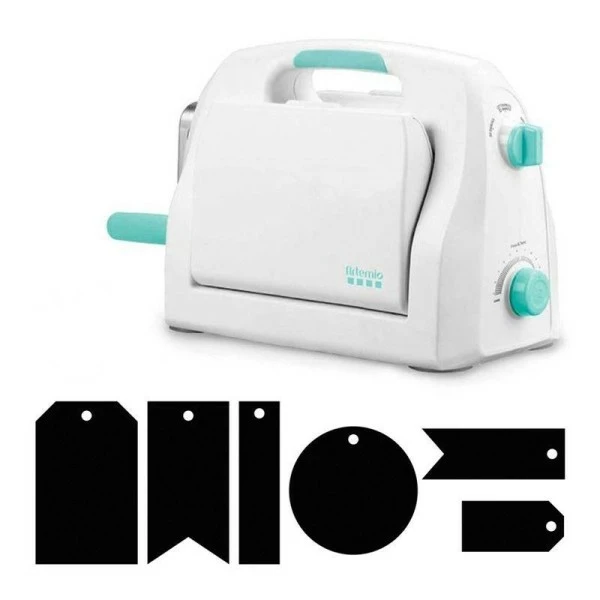 Machine de découpe et d’embossage Happycut A4 et matrices étiquettes. Découvrez la nouvelle HappyCut by Artemio, une machine de découpe et d’embossage adaptée à tous types de supports (papier, feutrine, cuir, tissu, liège, polyester, toile pour reliure) grâce à son système de réglage de la pression facile. La machine propose les 4 fonctions suivantesembossage 2D & 3D, impression typographique et découpe. La machine de découpe Happycut d’Artemio permet d’embosser et découper les matières au format A4 maximum (la matrice de découpe peut évidemment être plus petite). Elle possède une poignée, une manivelle et également un espace de rangement et des pastilles anti-dérapante. Cette machine ne nécessite pas d’alimentation électrique. Elle est totalement manuelle. Sont fournis avec cette machine1 plaque de base, 1 tapis de découpe, 1 plaque d’adaptateur et 6 matrices de découpe étiquettes. Les matrices étiquettes sont au nombre de 61 étiquette coins coupés de 6 x 3,8 cm, 1 étiquette coins coupés de 3,8 x 1,9 cm, 1 étiquette fanion de 6 x 3 cm, 1 étiquette fanion de 5,3 x 1,9 cm, 1 étiquette rectangle de 6 x 1,5 cm et 1 étiquette ronde de 4,7 cm.