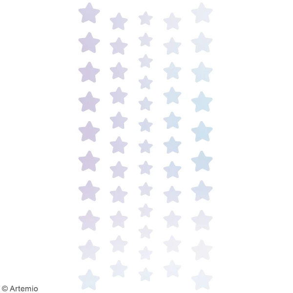 Ces adhésifs pourront être collés partoutsur un faire-part de naissance, un cadre photo, une carte, une page de scrap ou un objet à décorer. Mettez une touche d’originalité sur vos créations avec ces jolis stickers holographiques Étoiles d’Artemio!