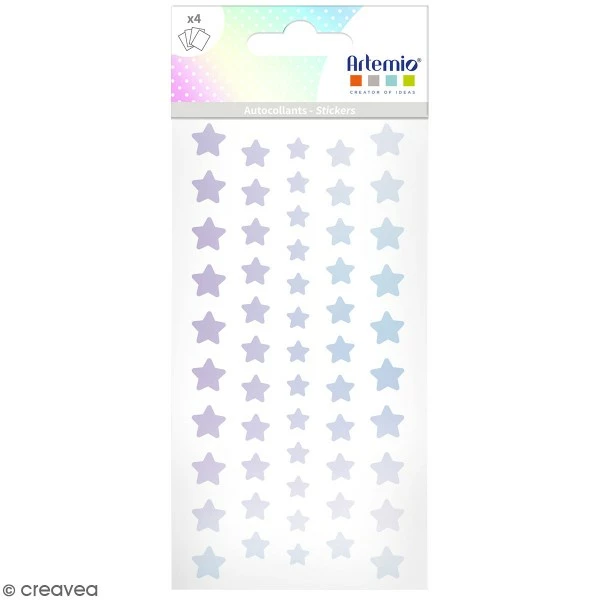 Ces 4 planches stickers holographiques Étoiles d’Artemio seront parfaites pour vos projets scrapbooking, carterie et de décoration.