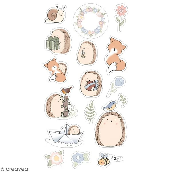 Planche de 17 stickers 3D Amstramgram Printemps & été par Artemio. Ces jolis autocollants aux motifs petits animaux de la forêt seront parfaits pour le scrapbooking, la carterie mais aussi pour décorer vos affaires !