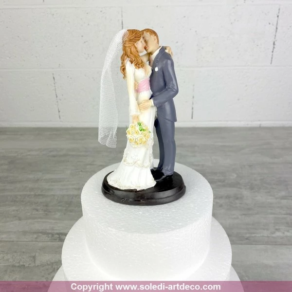 Description de Couple de mariés en résine, hauteur 18 cm, bisous, figurines pièce montée roux, gâteau de mariage