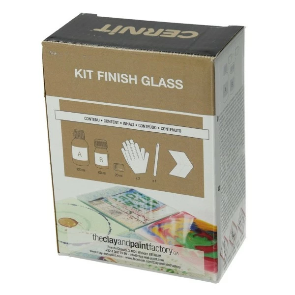 Description de Kit Résine epoxy cernit finish glass, 120 ml + 60 ml, avec accessoires et mode d’emploi