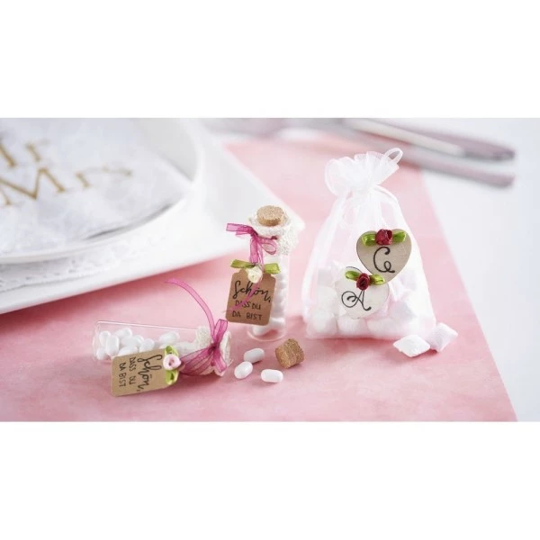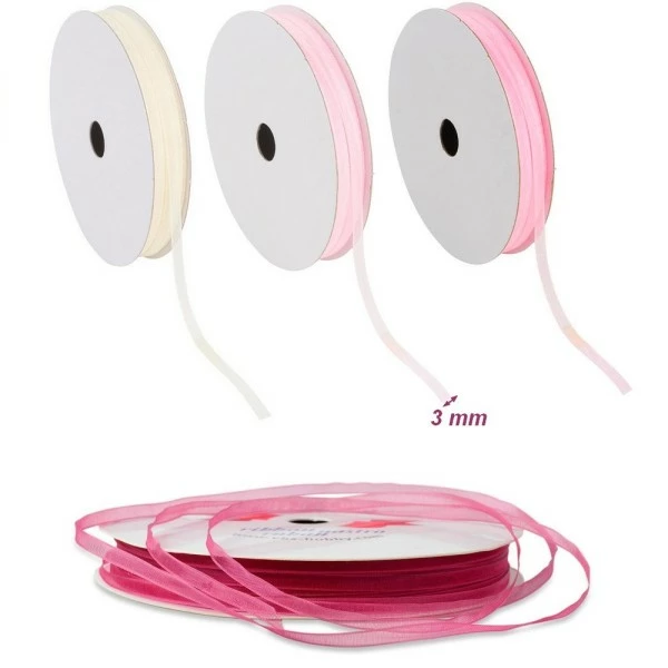 Description de Lot de 4 Rubans Organza tons Rose, bordure brodée, largeur 3 mm, longueur 4 x 4 m, rouleau décoratif