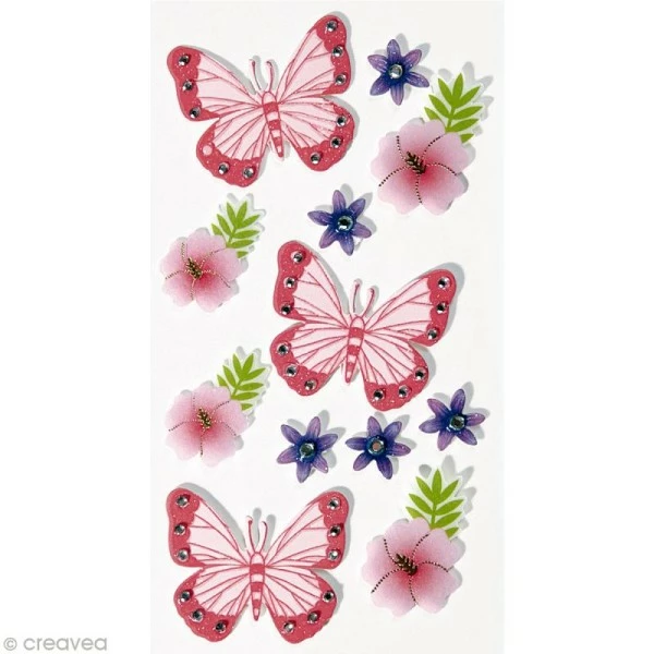 Sticker 3D Papillons et fleurs, idéal pour agrémenter vos créations carterie et scrapbooking :