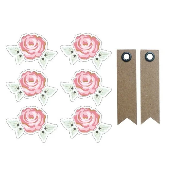6 stickers romantiques – Rose + 20 étiquettes kraft à œillet