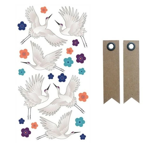 Description de Stickers 3D puffies Grues + 20 étiquettes kraft Fanion