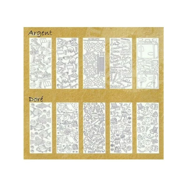10 PLANCHES DE STICKERS DORES + ARGENTES