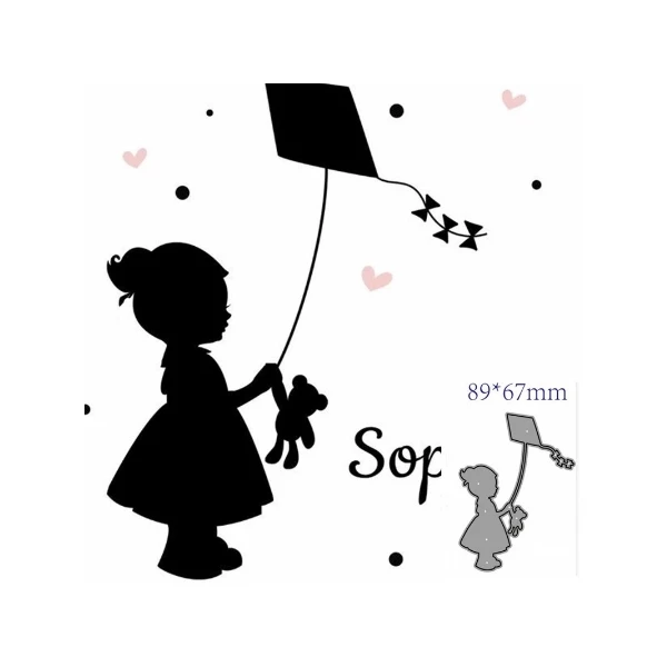 Die de scrapbooking sur le thème des enfants, avec cette petite fille tenant son cerf volant et son doudou 1 pièce Dimensions8,9cm x 6,7cm