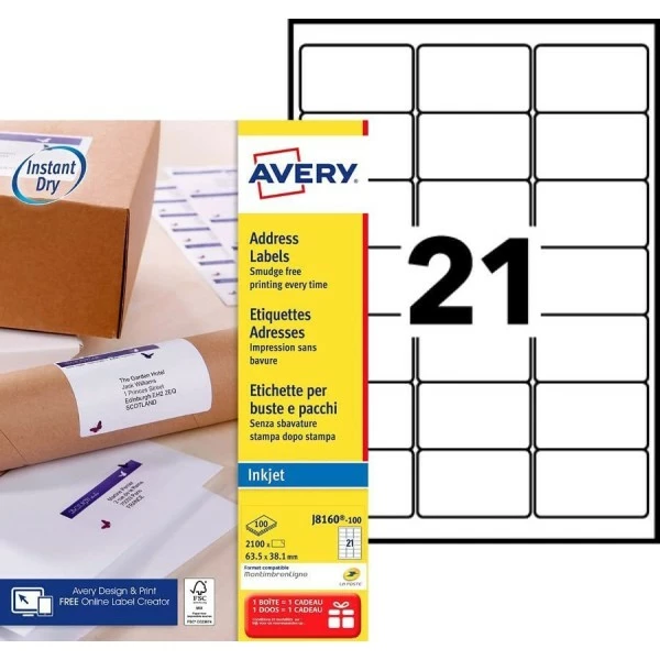 AVERY – Etiquettes d’adresse jet d’encre – 63,5 x 38,1 mm – Blanc