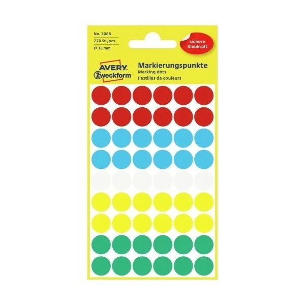 AVERY Zweckform – Pastilles de couleur permanentes – Ø 12 mm – Assortis