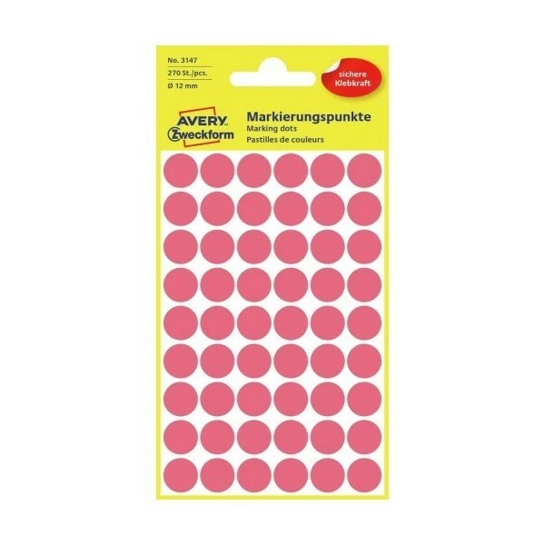 AVERY Zweckform – Pastilles de couleur permanentes – Ø 12 mm – Rouge fluo