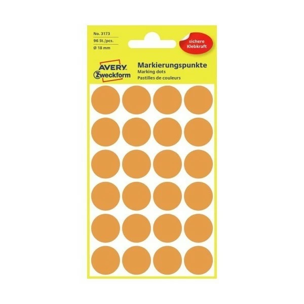 AVERY Zweckform – Pastilles de couleur permanentes – Ø 18 mm – Orange fluo
