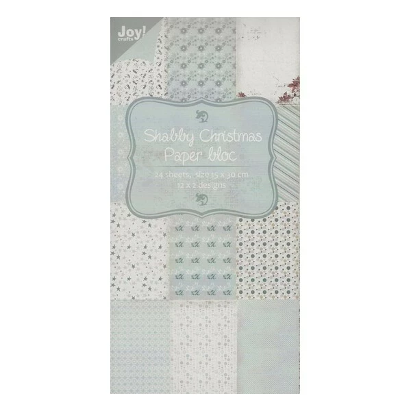Description de Bloc de 24 papiers scrapbooking 15 x 30 cm Joy Crafts SHABBY CHRISTMAS