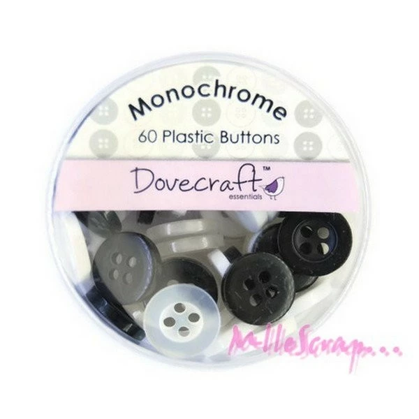 Description de Boutons noir, gris, blanc – Dovecraft – 60 pièces