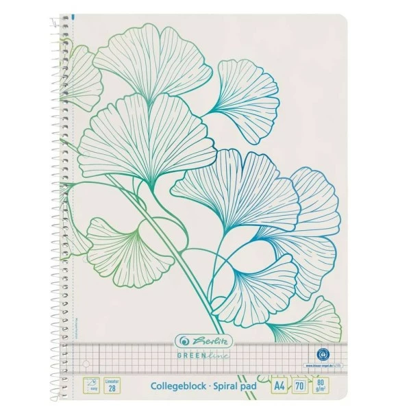 HERLITZ – Cahier spiralé GREENline “Ginkgo” – A4 – 5×5 + M