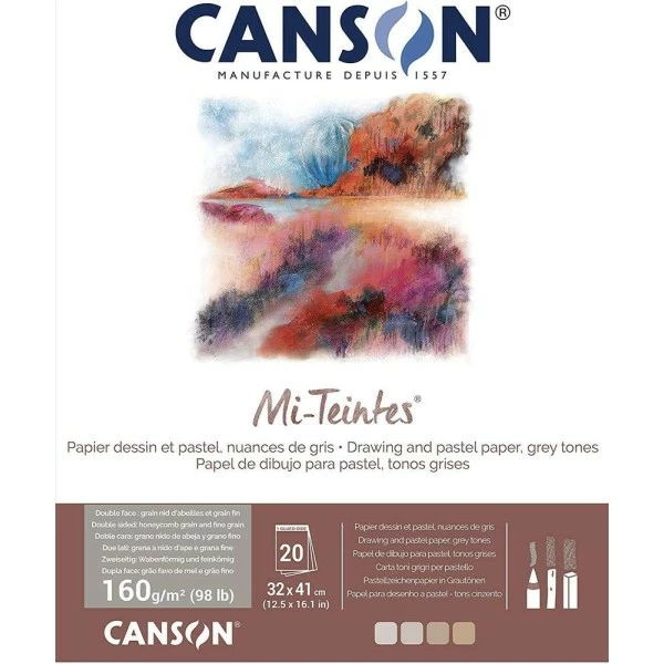 CANSON – Bloc de papier “Mi-Teintes” – 320 x 410 mm – Nuance de gris