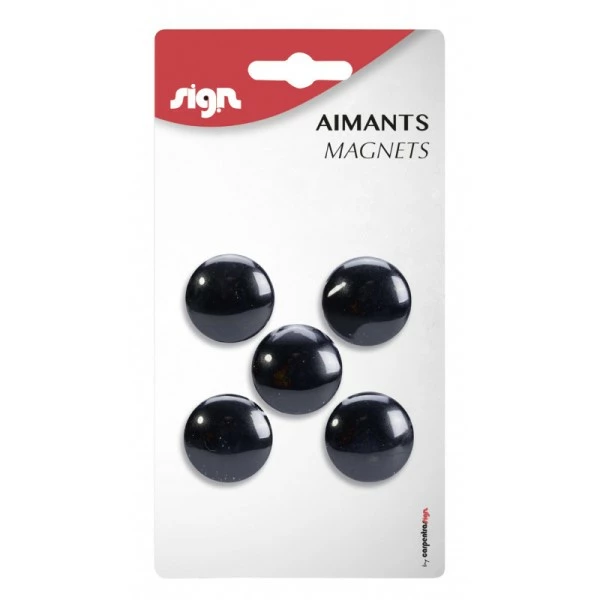 Description de Lot De 5 Aimants Ronds Diamètre De 27 Mm – Noir – Sign
