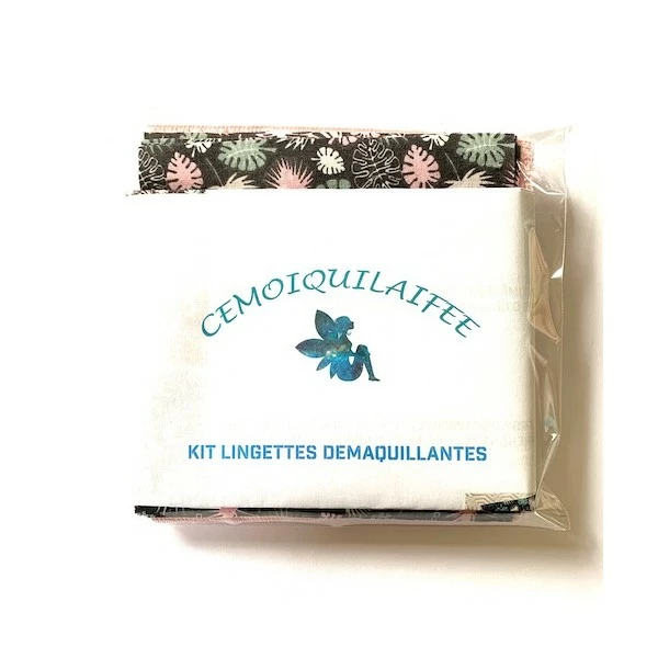 Kit comprenant les tissus nécessaires à la réalisation de 4 lingettes démaquillantes (tissu coton imprimé pour le dessus, tissu éponge bambou/coton pour le dessous)