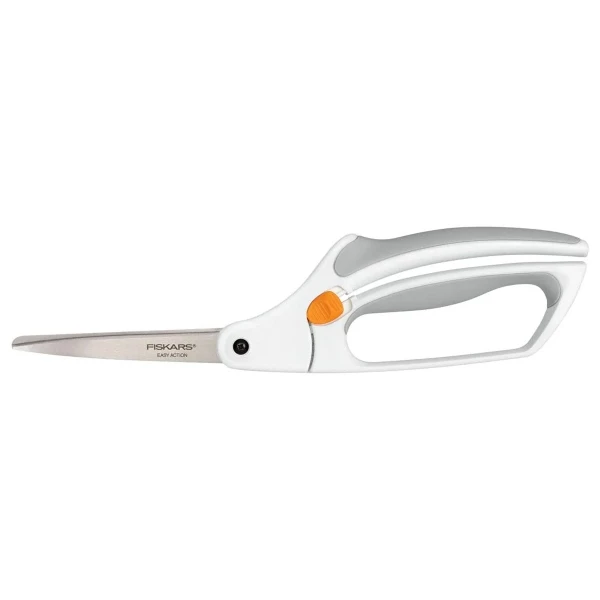 Fiskars ciseaux à usages multiples avec ressort et anneaux doux pour plus de confort.