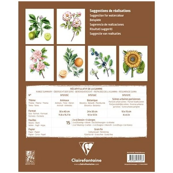 Données techniques pour Bloc Aquarelle Prédessiné – Botanic – 24 x 30 cm – 15 feuilles