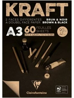 Données techniques pour Bloc de Papier Kraft Vergé double-face A3 – Brun et noir – 60 feuilles