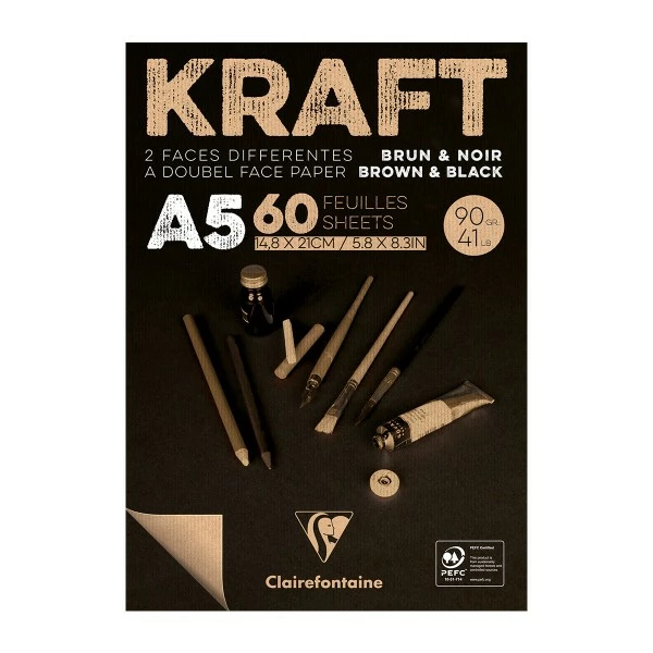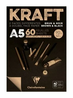 Données techniques pour Bloc de Papier Kraft Vergé double-face A5 – Brun et noir – 60 feuilles