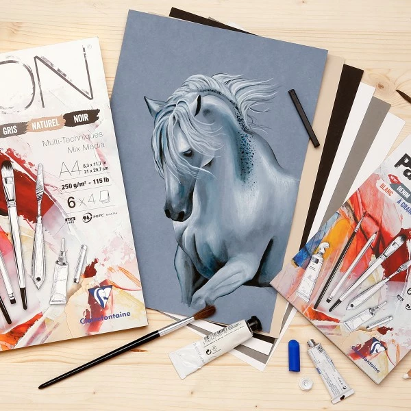 Les feuilles de ce bloc papier Paint’On ont ont un fort grammage de 250 gr/m² ce qui leur permettra de resister au grattage et de supporter plusieurs couches. Profitez de ses 6 types de papiers de qualité : papier blanc, à grain, Gris, Naturel et Noir pour dessiner, griffonner, noter ou s’entraîner au dessin.