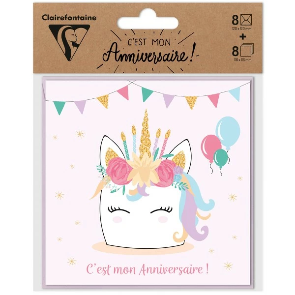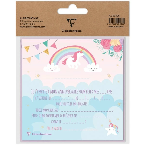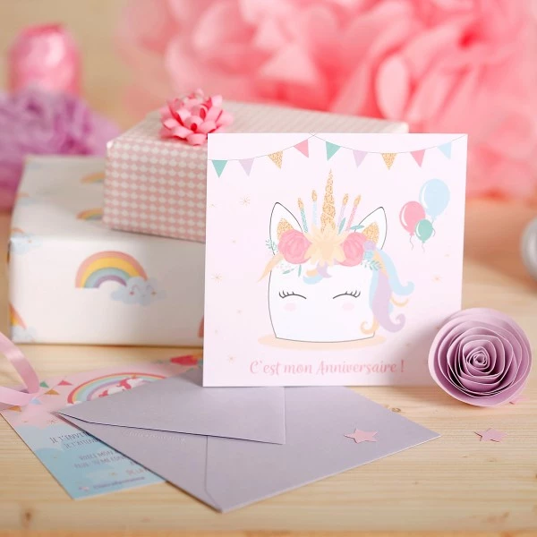 Données techniques pour Set cartons d’invitation – Licorne – 8 pièces