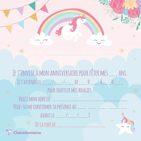 Pour des goûters et fêtes d’anniversaire réussies, il est impératif d’envoyer de jolies cartes qui feront de l’effet. Ce sera le cas avec ces cartons d’invitation sur le thème Licorne !