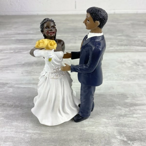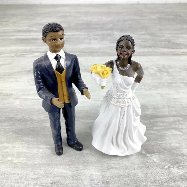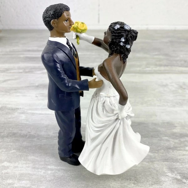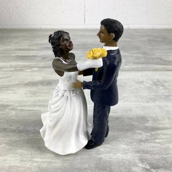 Description de Couple de Mariés Noirs en Résine bouquet dans la main, 15 cm, figurines pièce montée et mariage