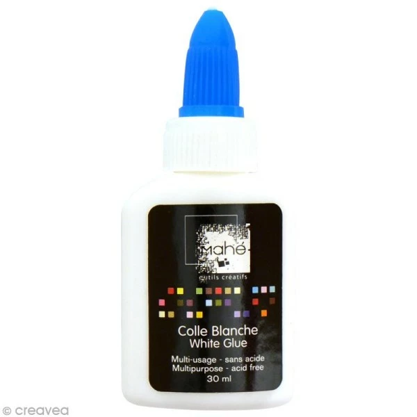 Ce flacon de colle blanche 30 ml de la marque Mahé est multi-usages et universel. Vous pourrez coller toutes sortes de matériaux courants comme le papier ou le carton. Sans acide, la colle 30 ml est liquide et s’appliquera facilement et avec finesse sur votre support. Elle pourra être utilisée pour le scrapbooking.