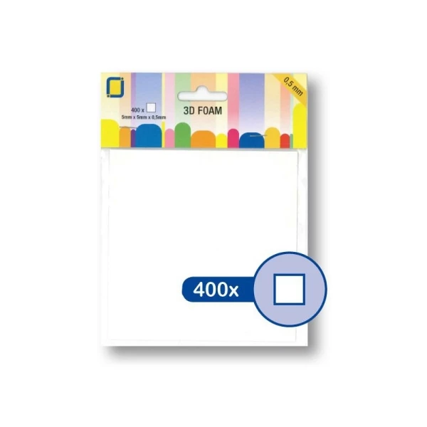 400 Carrés mousse adhésifs double face. Taille5 x 5 mm Epaisseur0.5 mm ColorisBlanc