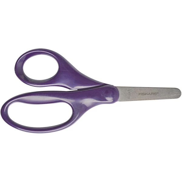 Ciseaux enfants Fiskars avec bouts arrondis et grands anneaux.