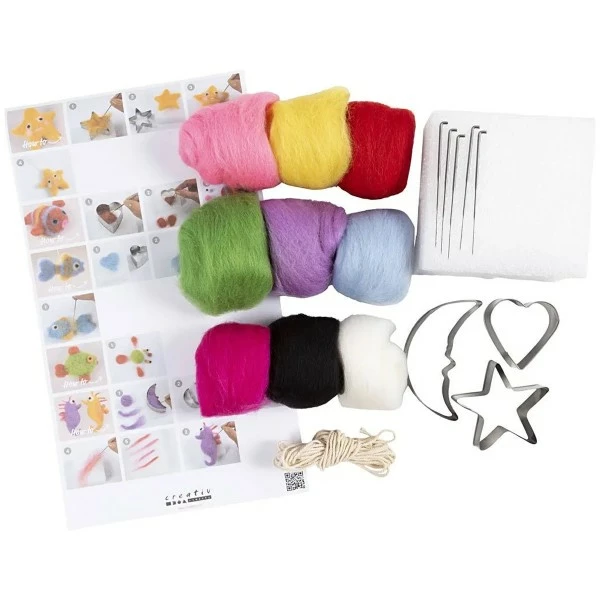 - ContenuLaine cardée, aiguilles et support, tampon en feutrine, pochoirs