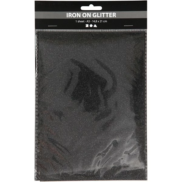 Description de Papier transfert textile pailleté – 14,8 x 21 cm – Noir – 1 pce